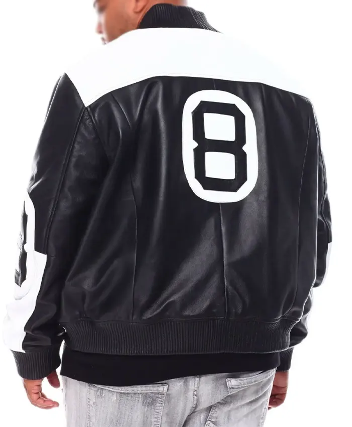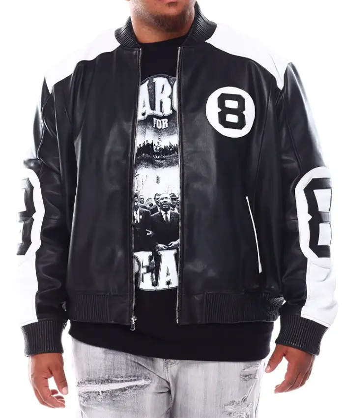 8 Ball Black and White Bomber Leather Jacket