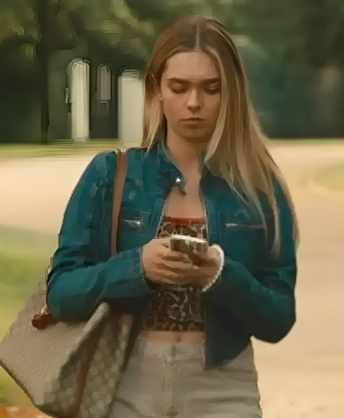 Finding a winter layer that is both comfortable and stylish can be hard. Especially when denim isn’t warm enough for the season. The Amelia May Wild Cherry 2025 Denim Jacket is inspired by Allegra Lonsdale. And shows a young person’s desire to be independent and quietly rebel. Amelia May’s role in Wild Cherry 2025 is effortlessly charming. And that spirit is captured in a jacket that makes you feel confident every day. The blue denim fabric makes it look casual but still purposeful.