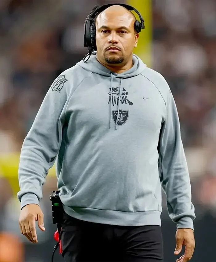 Antonio Pierce is the head coach of the Las Vegas Raiders. This hoodie celebrates his message to “Be A Change Maker,” showing support for both the coach and the team.