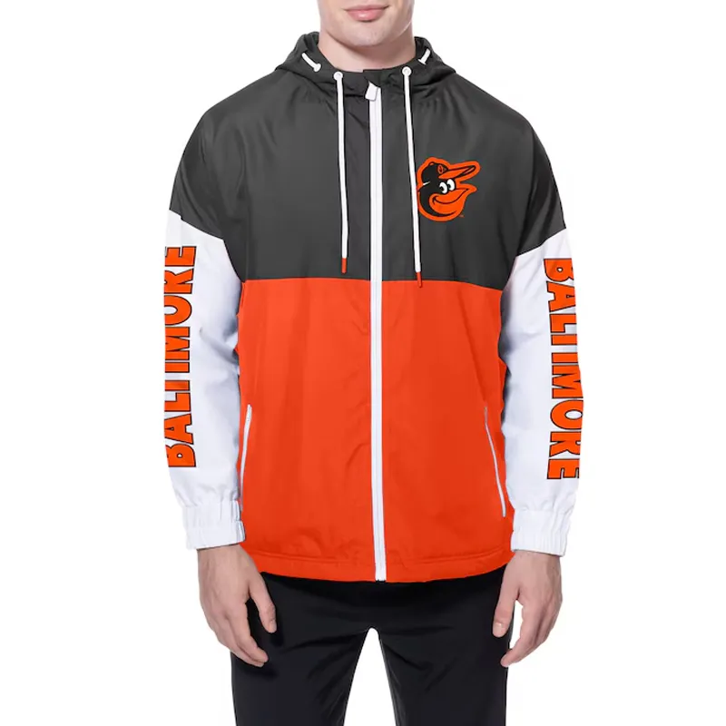 Baltimore Orioles Color Block Orange/Black Hoodie Windbreaker