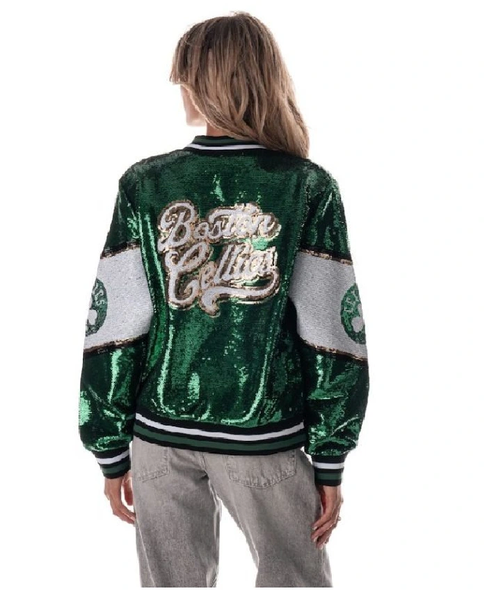 Boston Celtics The Wild Collective Sequin Full Zip Bomber Jacket