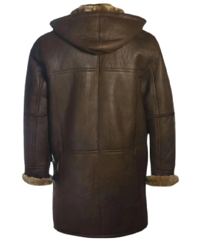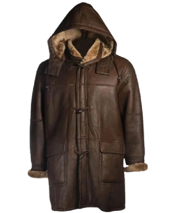 Buy Brent Hook Closure Chocolate Brown Shearling Fur Hooded Warm Leather Coat For Sale