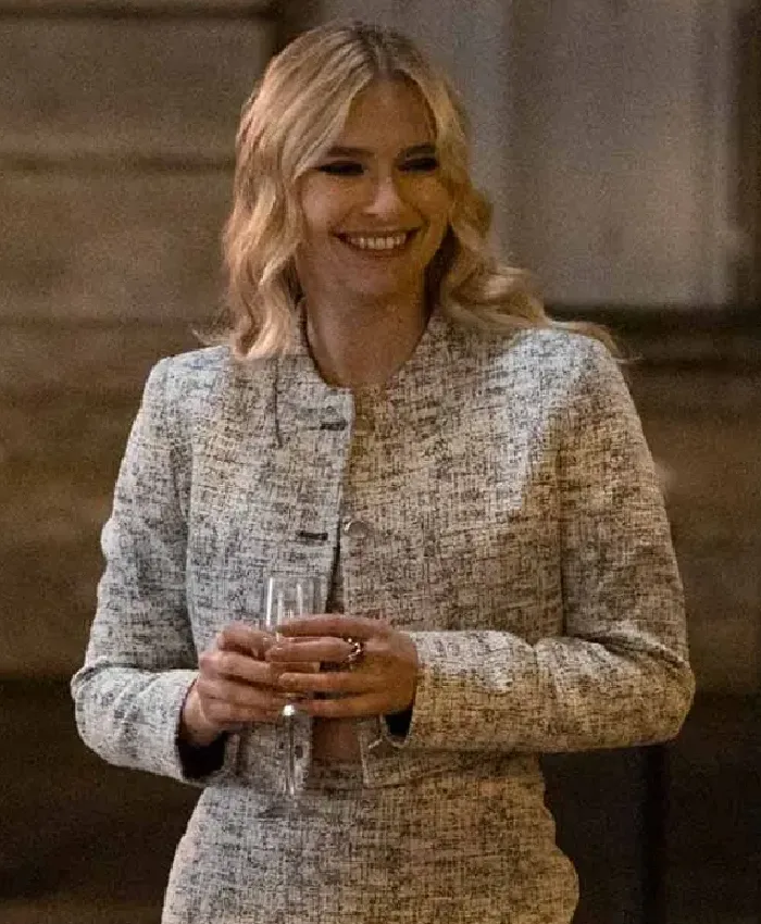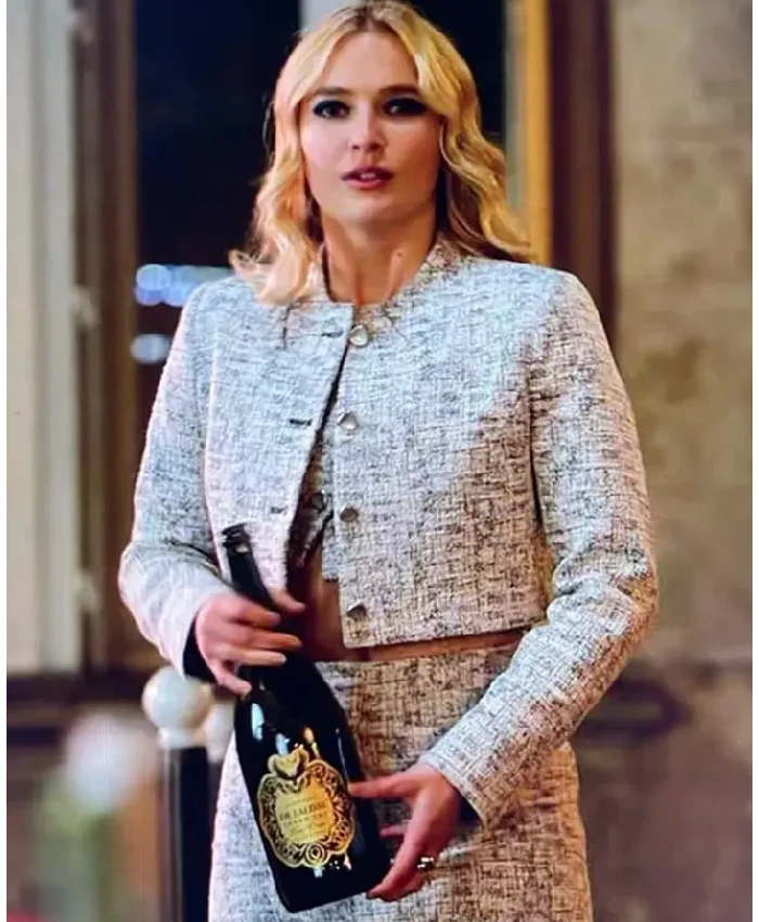 TV-Series Emily In Paris Season 03 Camille Razat Grey Cropped Tweed Jacket For Men and Women