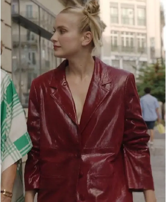 TV-Series Emily In Paris Season 03 Camille Razat Maroon Leather Blazer