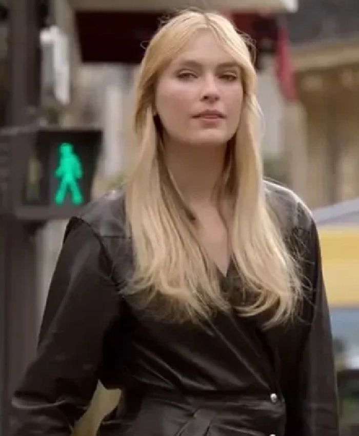 Camille Razat Emily In Paris S02 Dark Brown Leather Coat