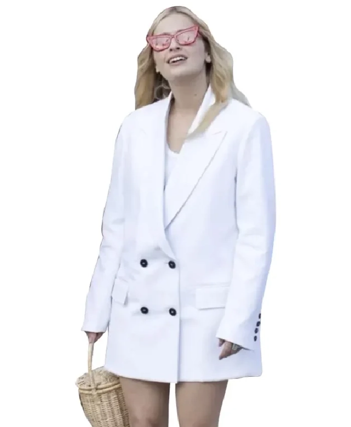 Camille Razat TV-Series Emily In Paris Camille White Double-Breasted Cotton Blazer Coat