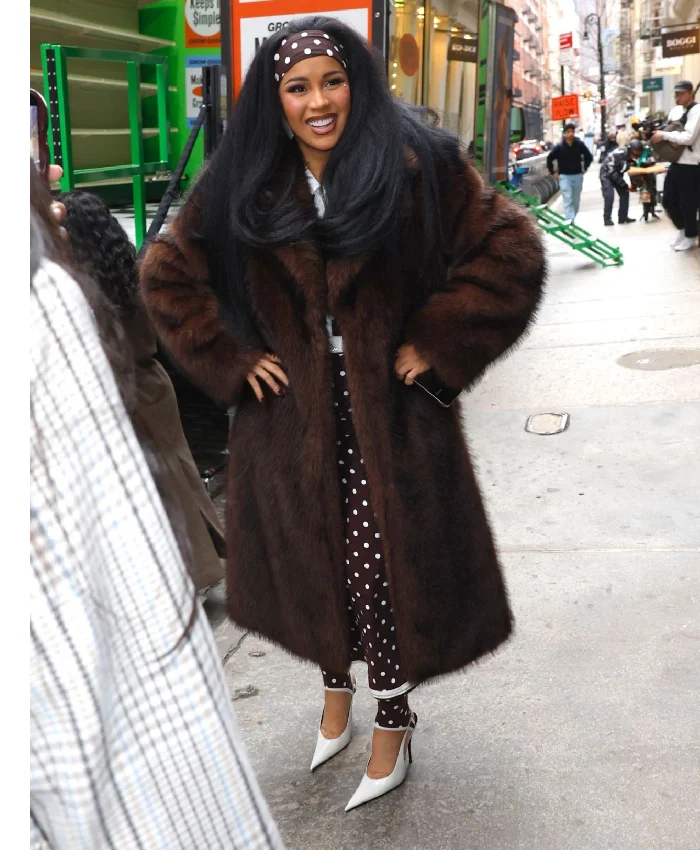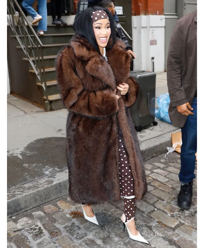 The time has come to make a statement and make headlines wherever you go wearing the Cardi B Brown Fur Coat. This outfit is not just any other celebrity outfit that you can skip and look at the other one in line. However, this ensemble reflects the charismatic personality and charm of Cardi B, the renowned American Rapper. Moreover, the main theme behind this ensemble is modern street wear, luxury and glamour. Furthermore, you must have this as it uplifts your outfits, whether casual or dressy, and this coat can be worn over anything, like jeans or dresses. This is really something that you can Add To Cart, and the good news is that it’s offered to you only on Las Vegas Jacket, so get started and get moving as we cover the design in detail.