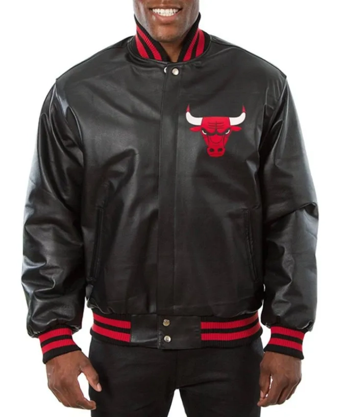 Buy Chicago Bulls Varsity Full-Snap Leather Black Jacket