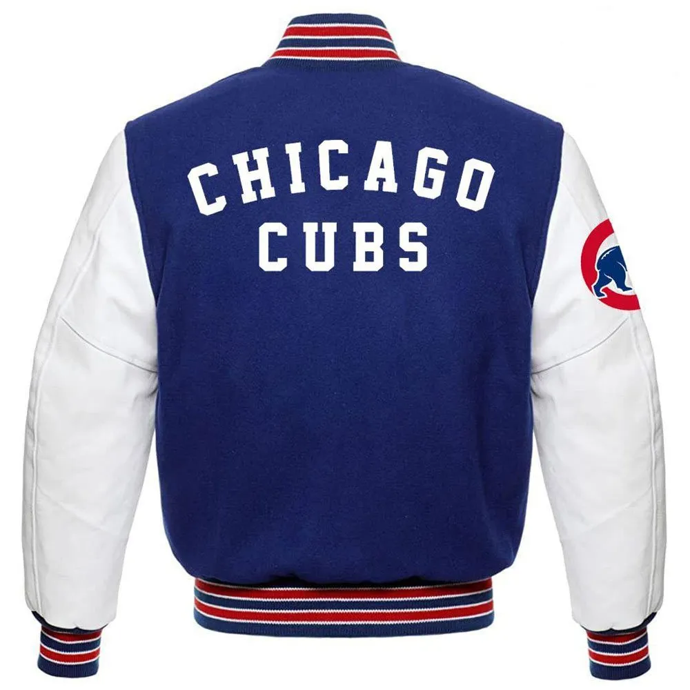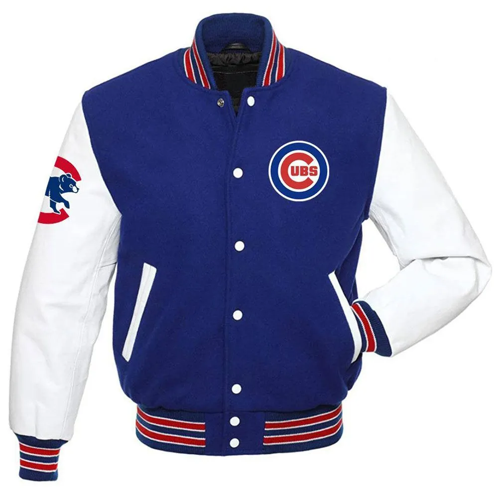 Chicago Cubs Blue and White Varsity Wool/Leather Jacket