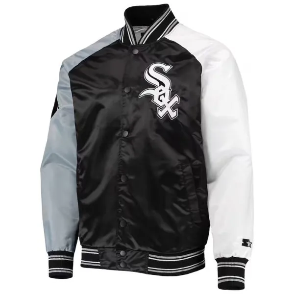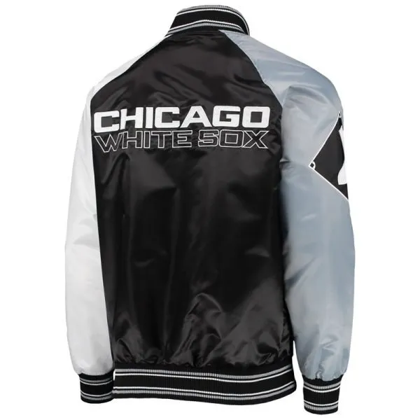 Chicago White Sox Reliever Satin Black and Silver Jacket
