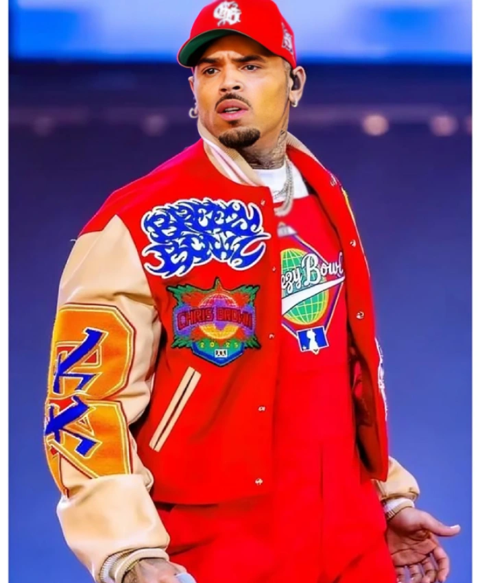 Chris Brown Breezy Bowl XX Red Letterman Jacket