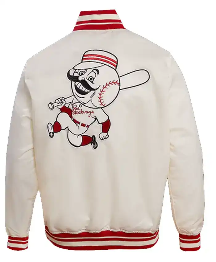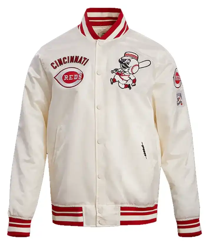 Cincinnati Reds White Varsity Satin Full Snap Jacket