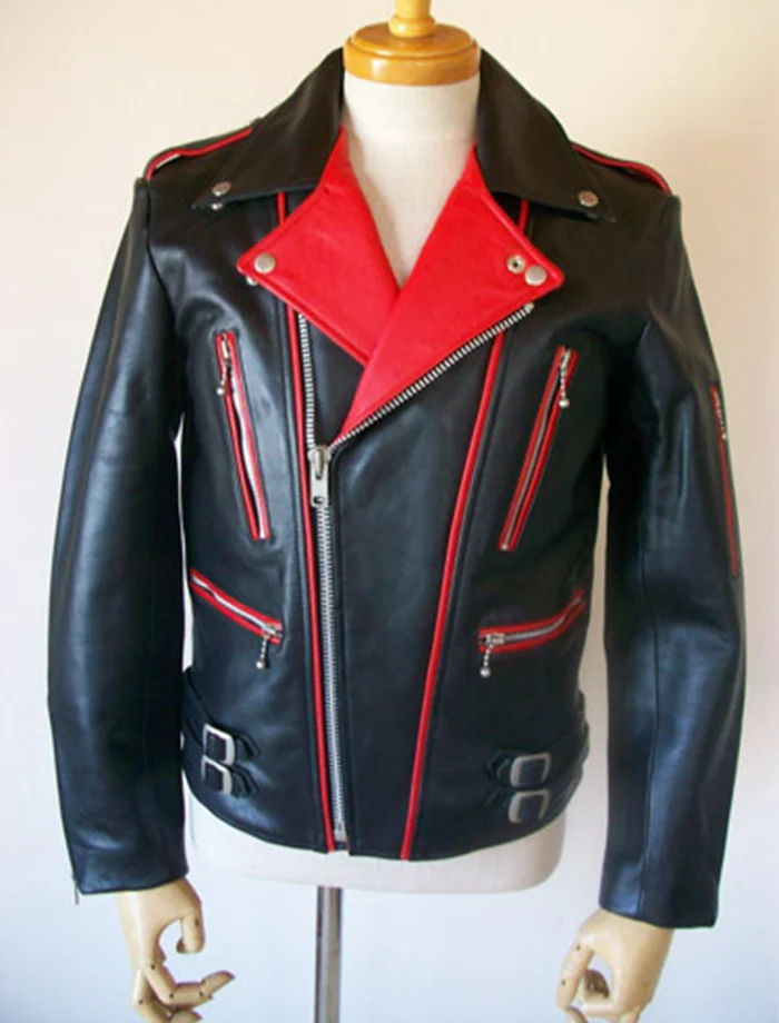 Classic Motorcycle Red And Black Leather Jacket