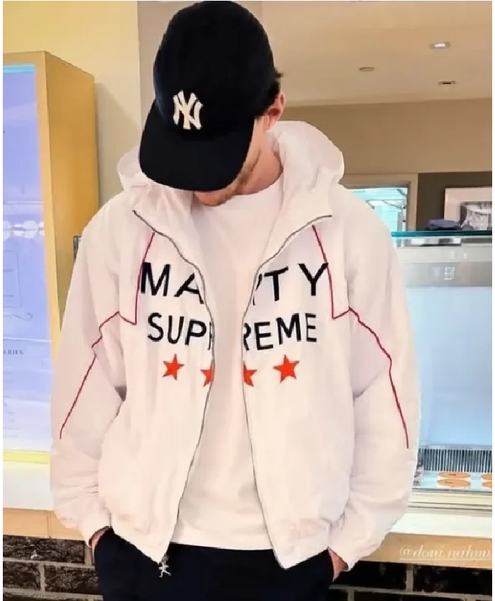 Fashion and styling are one of those things that you cannot keep yourself away from. It’s one of many traits that individuals share among each other. Furthermore, as we look at this wonderful Declan Rice Marty Supreme White Track Jacket it stands out for various reasons. The white color tone is one of those elements that has grasped attention. Beyond that, this jacket is stitched with cotton polyester that allows a light weight fit. This outerwear also includes a zipper closure along with multiple pockets. These aspects combined help lift up its functionality. You can easily stylize it and wear this throughout the year.