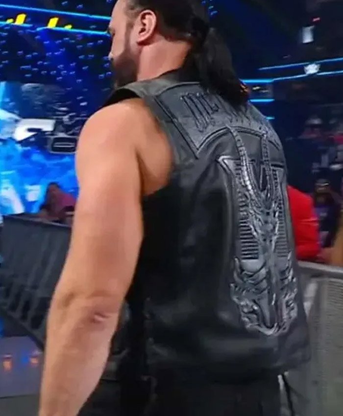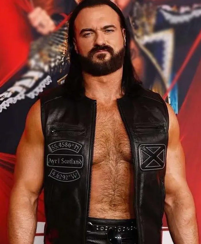 WWE Wrestler Drew Mcintyre Black Leather Motorcycle Vest