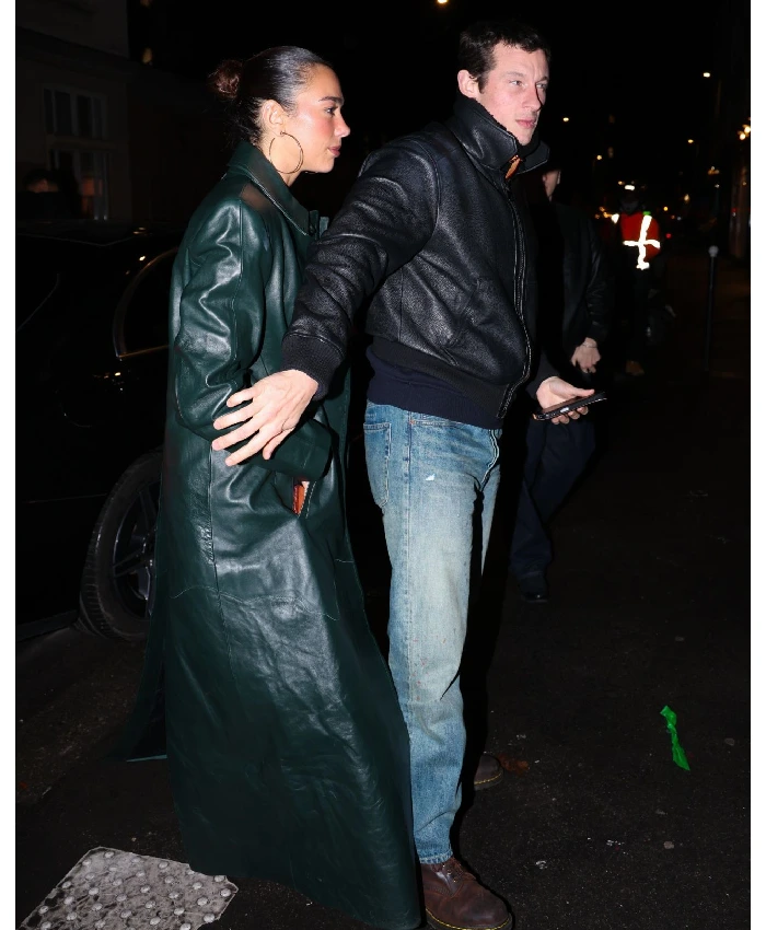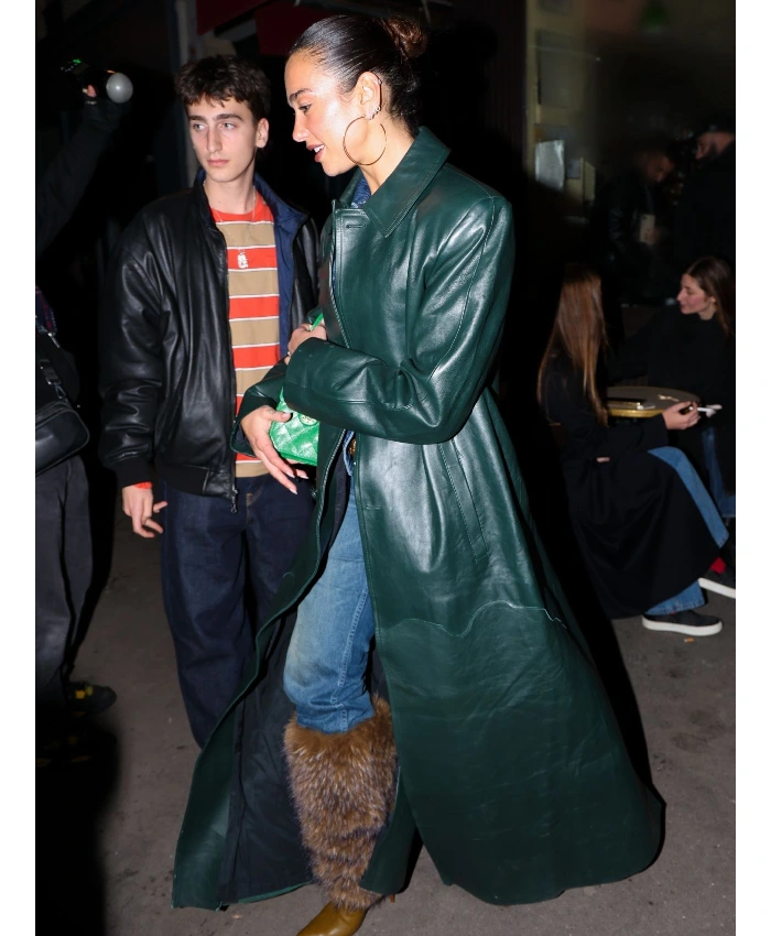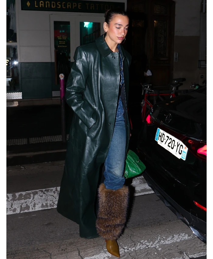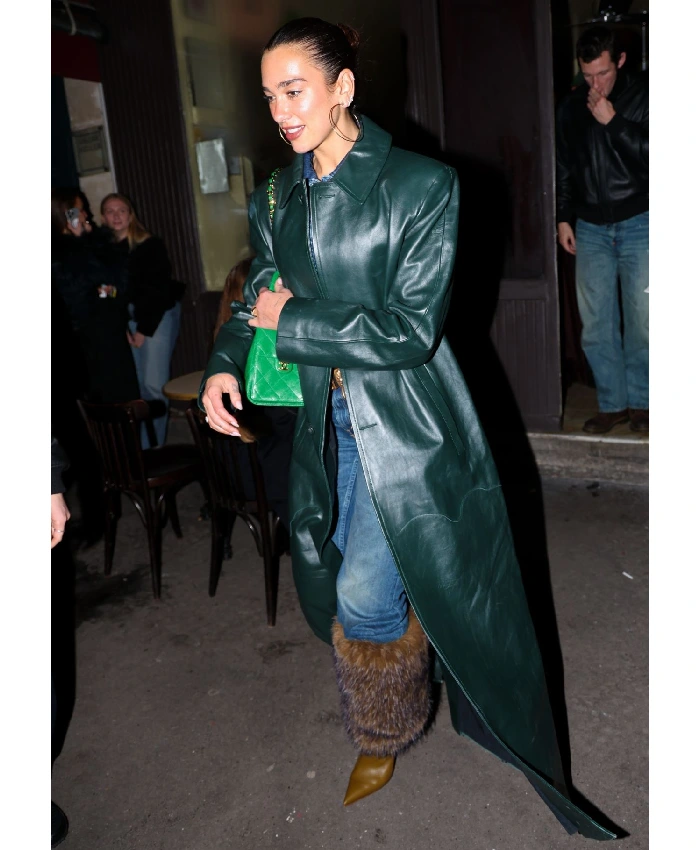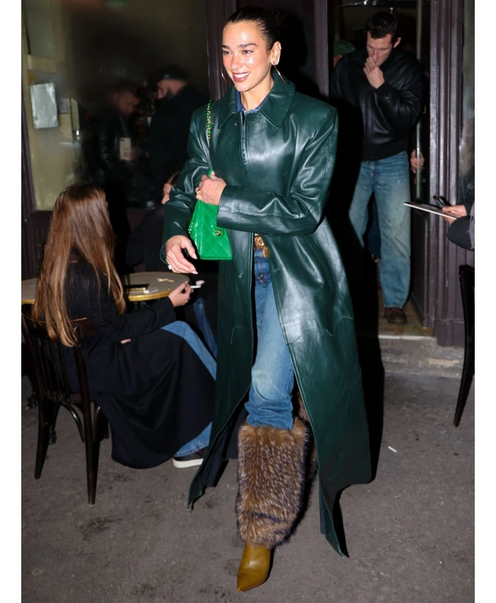 Dua Lipa Green Raf Simons Leather Coat