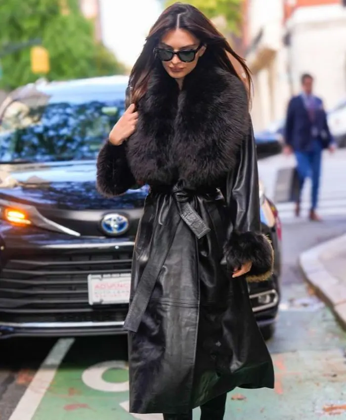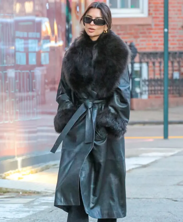 Emily Ratajkowski NYC 2026 Leather Trench Coat