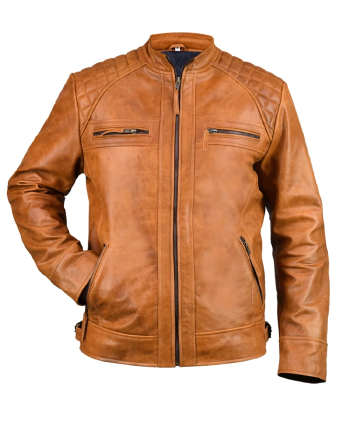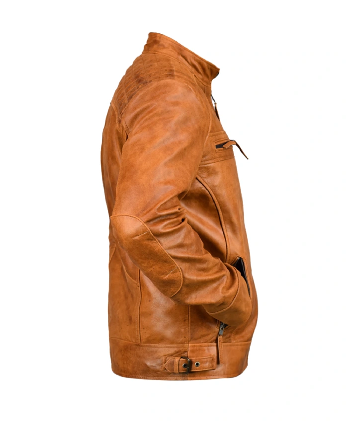 This makes it perfect for wearing over casual t-shirts or light sweaters. The Shop Now Ethan Distressed Brown Waxed Leather Cafe Racer Jacket Sale also has full-length sleeves with buttoned cuffs that fit perfectly. The four outside pockets are very useful and help keep the look clean. Also, the YKK zipper closure goes down the front smoothly. Which is interesting because it highlights those nice clean lines and keeps it secure while you wear it. This jacket isn’t just any old jacket; it’s a real statement piece! It perfectly combines practicality with that cool, vintage cafe racer vibe. Well, it’s super easy to style the Ethan jacket. Team it up with dark denim and boots for a stylish, confident vibe.