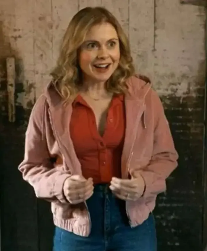 Samantha Ghosts S02 Rose McIver Pink Corduroy Hooded Jacket