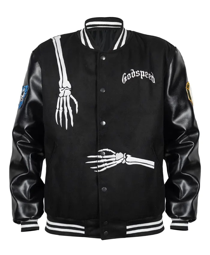 James Blake Godspeed Rod Skull Black Letterman Varsity Jacket