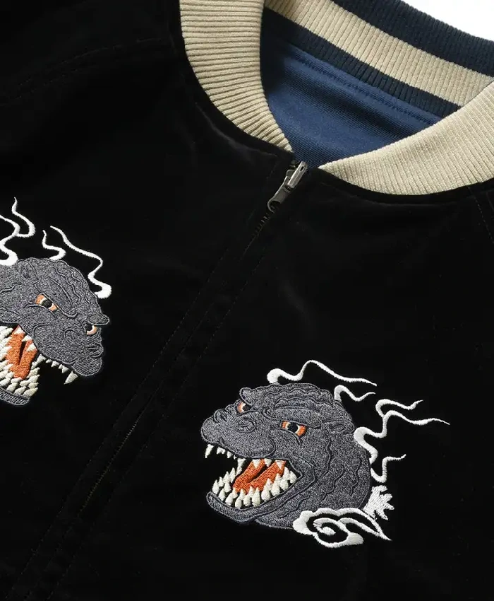 Godzilla Monster Homegame Souvenir Black and Blue Bomber Jacket