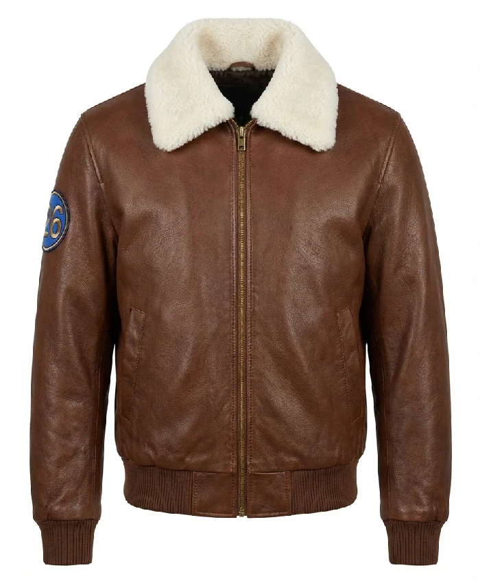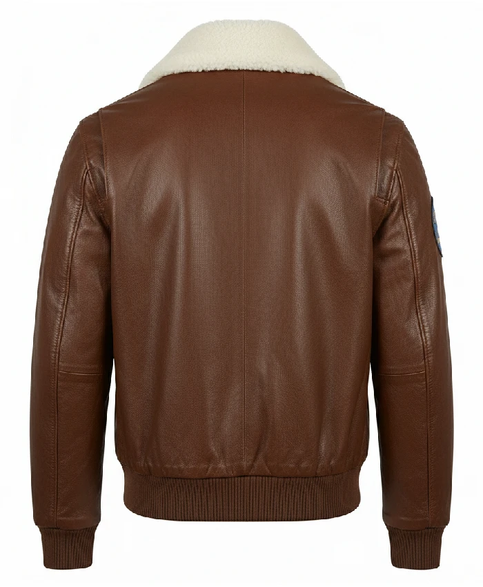 The leather feels premium and the brown tone is deep. The shearling collar adds a cool, rugged edge.