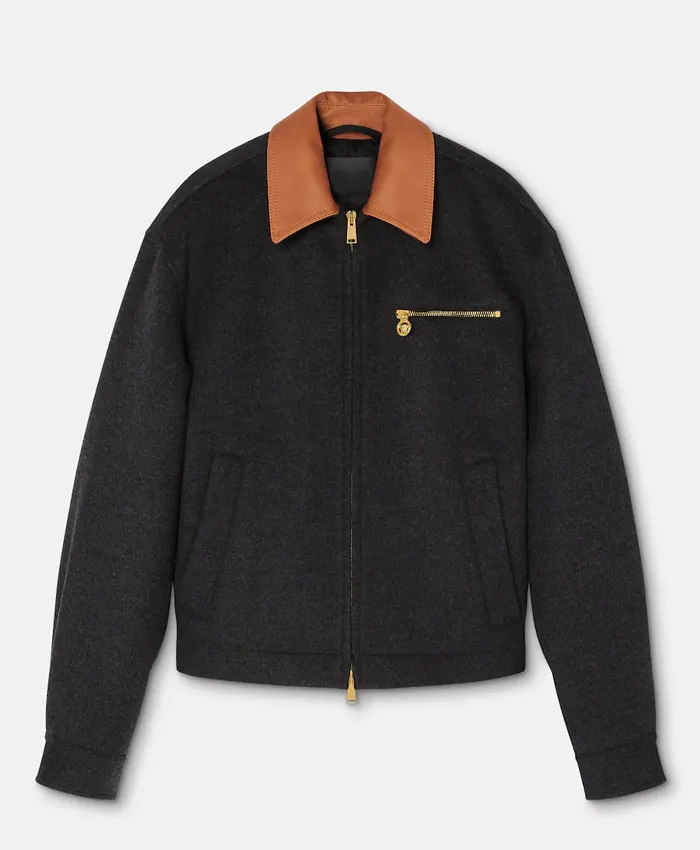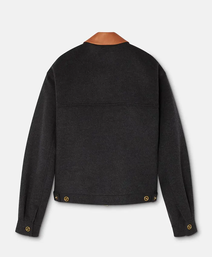 Premium Wool Blend with Sophisticated Leather Collar Jacket