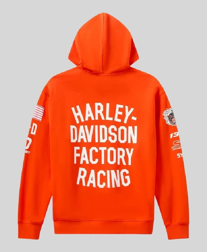 Harley Davidson Factory Racing Fanwear Black and Orange Pullover Hoodie For Sale