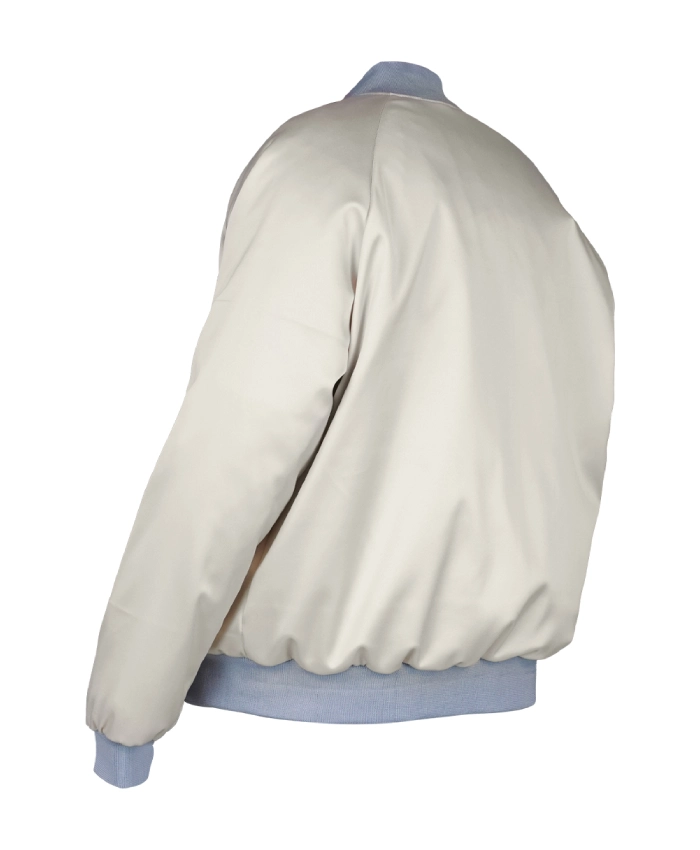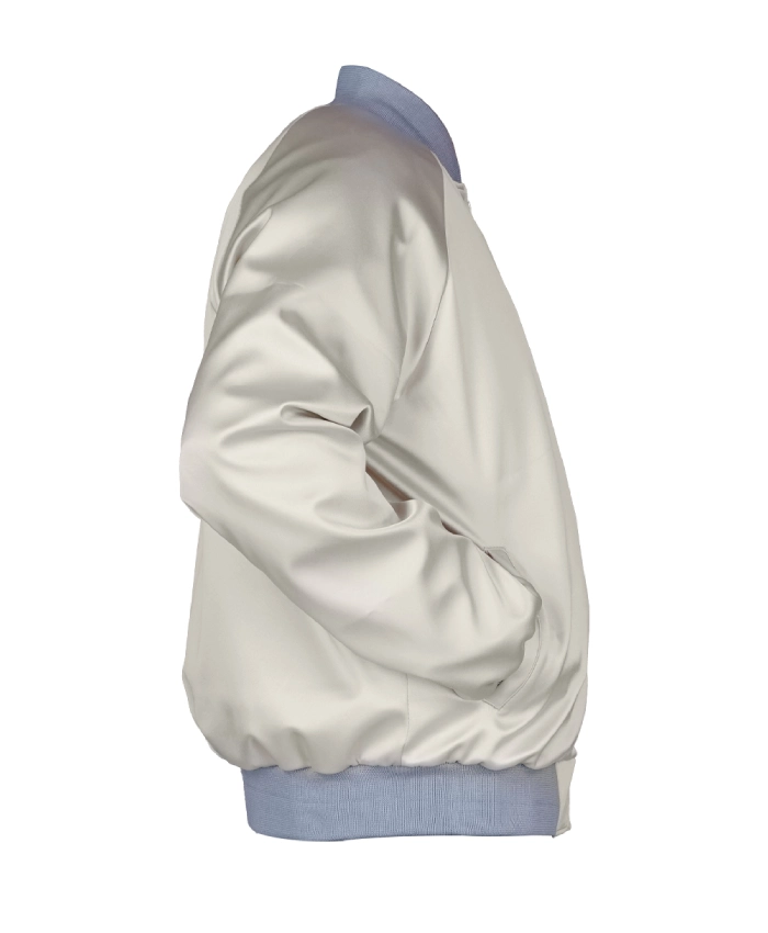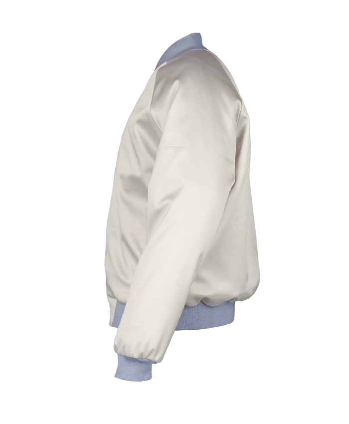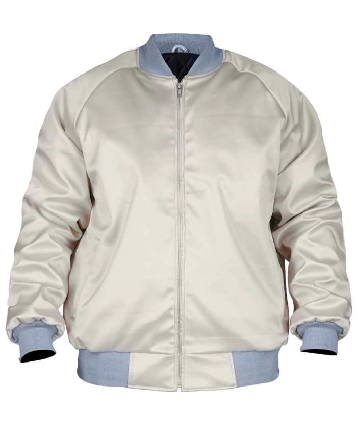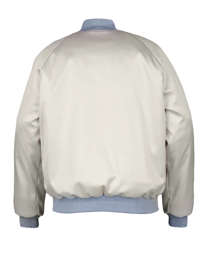 Proper bomber jacket. The metallic sheen makes it stand out from regular satin jackets.