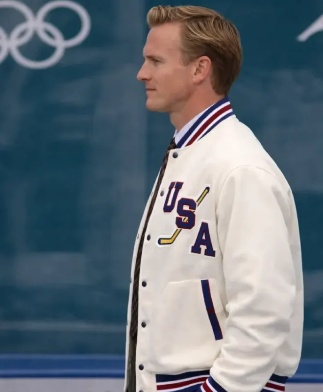 Recreation – Buy Hockey Team USA 2026 John Wroblewski White Varsity Jacket for Sale