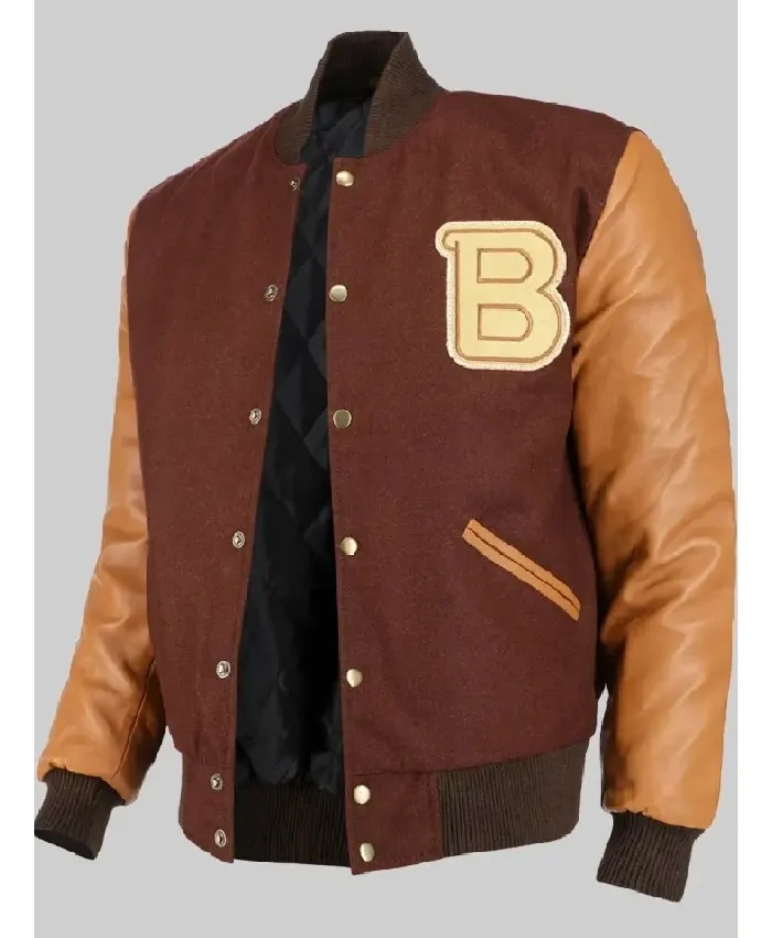Shop Hotline Miami Maroon and Brown Varsity Letterman Jacket For Sale