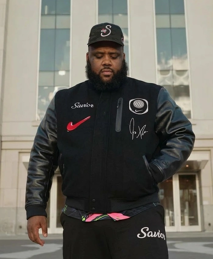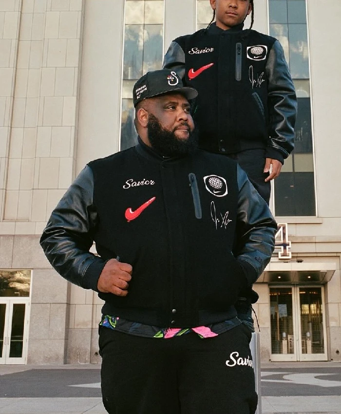The Jae Tips x Nike Wool with Leather Black Varsity Jacket combines a wool body with leather sleeves, a combination that promises both warmth and lasting quality. The interior features a gentle, silky viscose lining, designed for all-day wearability. It has a hidden zipper along with a snap-tab button closure. Which adds a neat and secure finish. The rib-knitted collar and cuffs help keep the fit in place, while the full-length sleeves add a structured look.