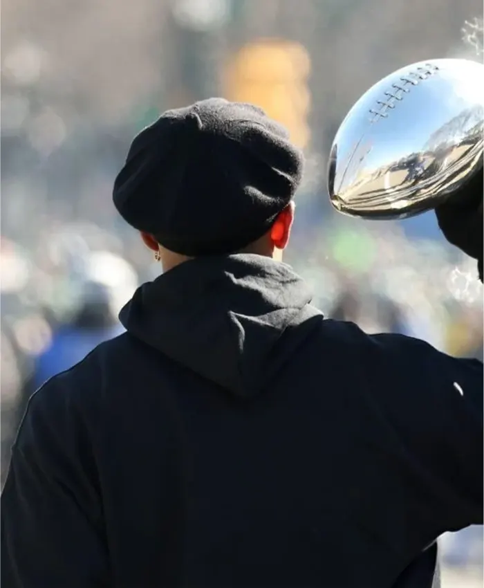 This hoodie gained iconic status after Jalen Hurts wore it during the unforgettable Super Bowl victory parade, symbolizing triumph and style.