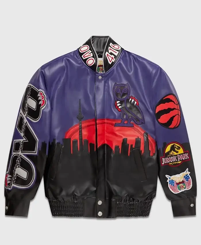 OVO Jurassic Park Purple And Black Leather Varsity Jacket