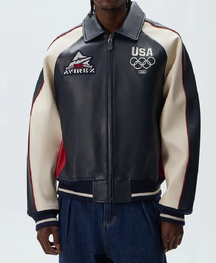 Shop Kith & AVIREX for Team USA Leather Bomber Jacket For Men and Women