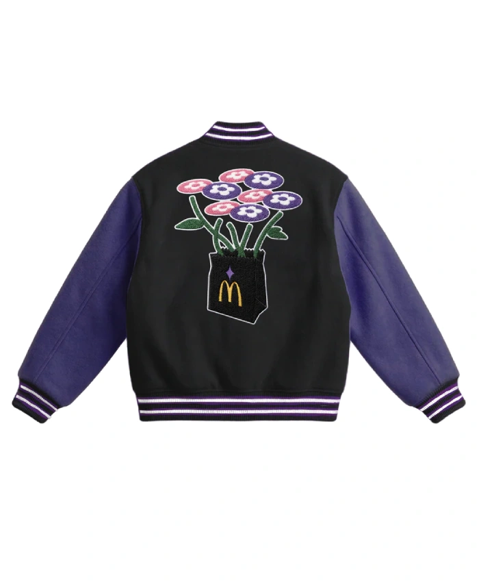 Make the world glaze your bold and elegant styling as you walk the streets. This calls for an upgrade in your wardrobe. You need to focus on outfits that are not only loud and vocal but are equally stylish and comfortable. Moreover, in that regard, what you need is the Kpop Demon Hunters X McDonald’s X Vandy Varsity Jacket. This fashion piece has become a talk of the town, and everyone is talking about this style. Furthermore, the key idea this ensemble gives is to turn a fictional entertainment world into real, wearable fashion. Just like that, when this apparel is gaining popularity everywhere, the best thing to do is make it part of your wardrobe. Make your online purchase only from Las Vegas Jacket. So with that said lets focus on the detailed design.