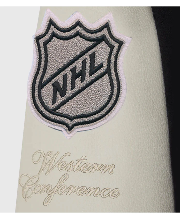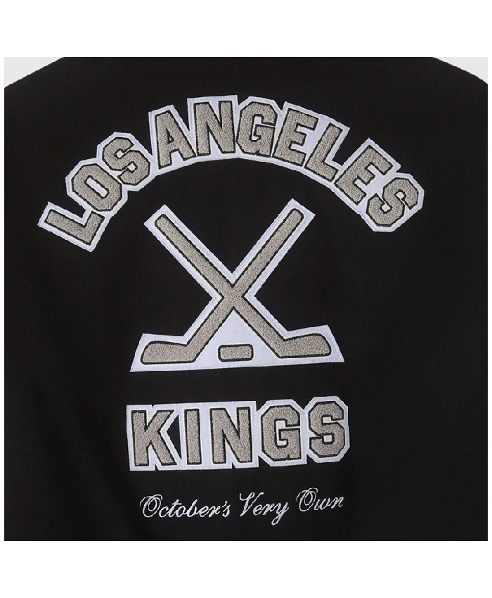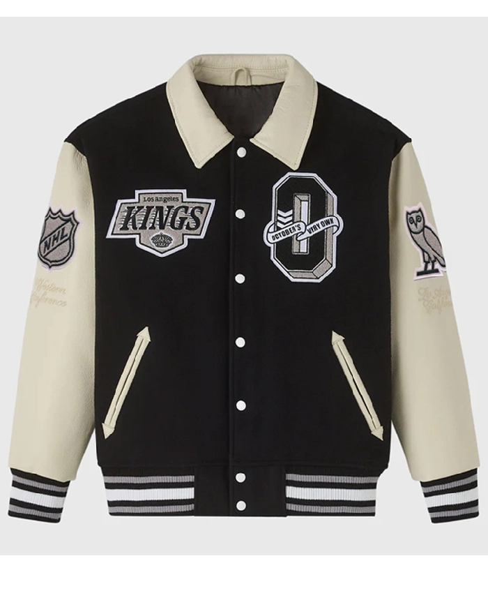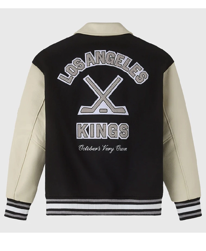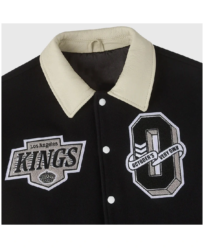 Shop OVO Los Angeles Kings Black/Beige and Wool/Leather Varsity Jacket -Unisex