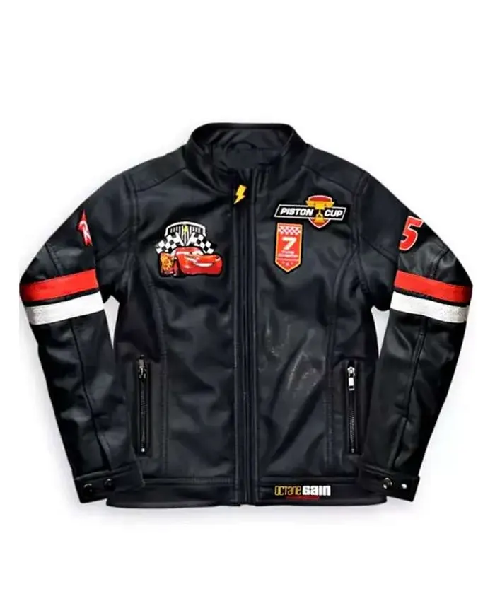 Disney Pixar Cars Lightning Mcqueen Piston Cup Racing Black Leather Jacket