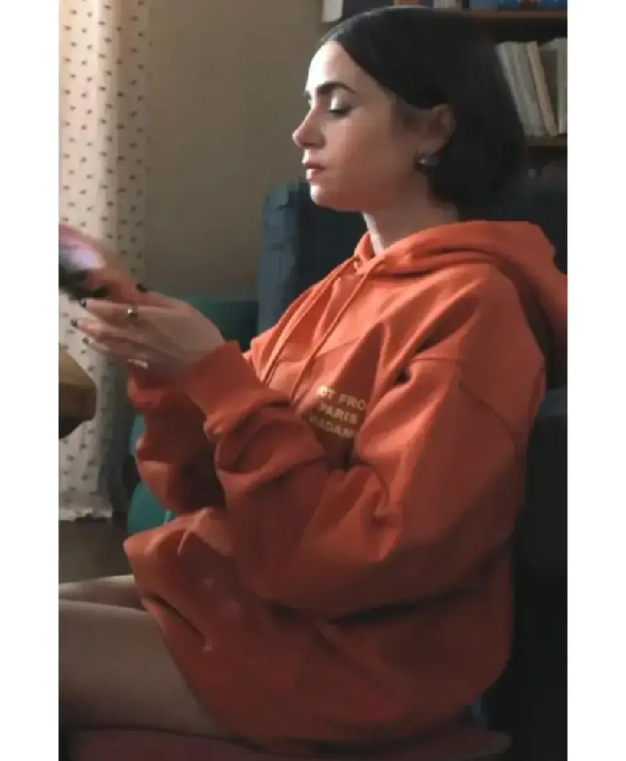 Lily Collins Emily In Paris S05 Orange Slogan Hoodie
