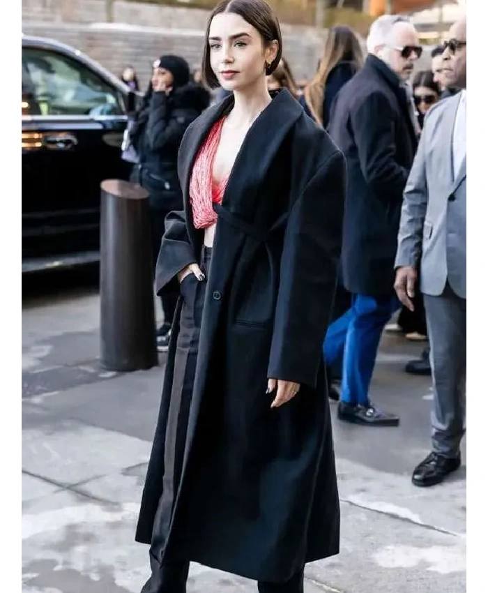 Lily Collins Fashion Show 2026 Black Coat