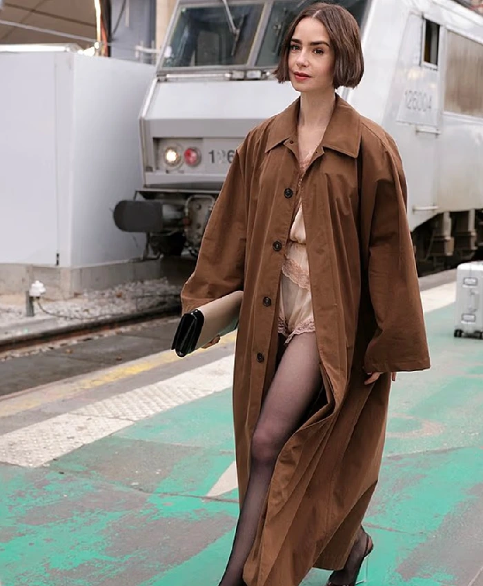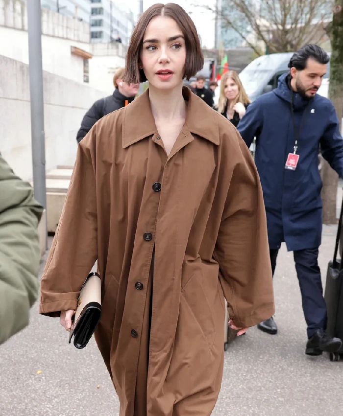 Be the first to review “Lily Collins Orient Express Brown Coat”