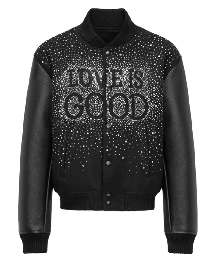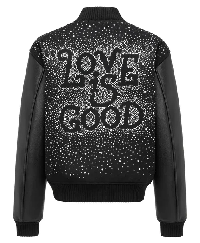 LOVE IS GOOD Starry Rhinestone Leather Jacket