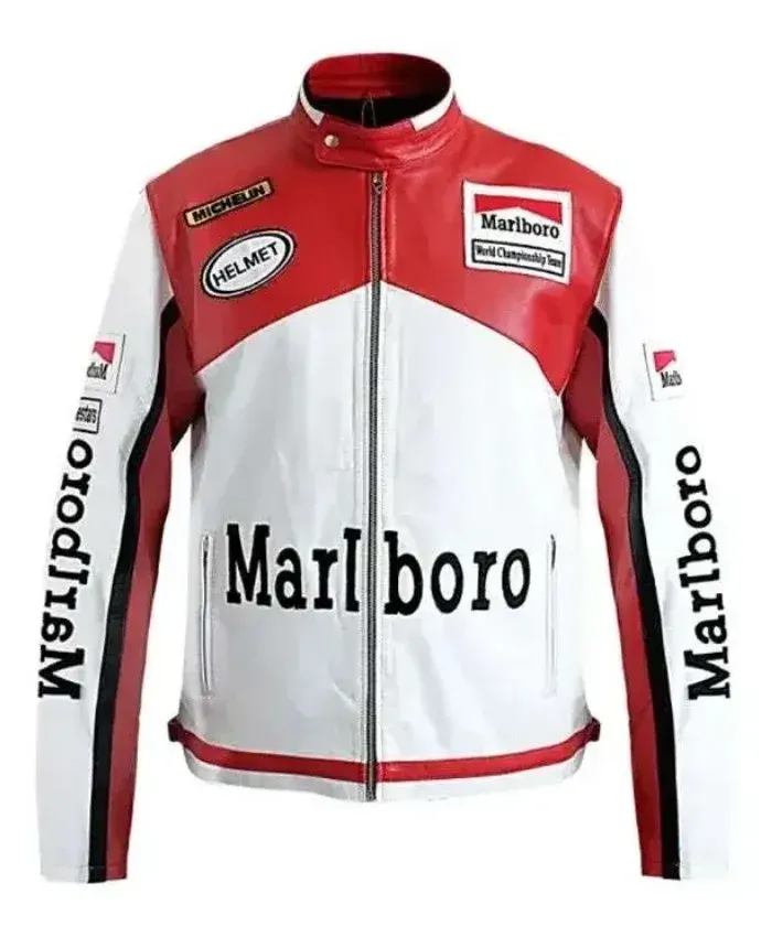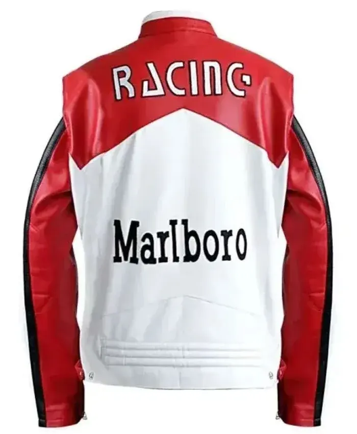 Unisex Vintage Red and White Marlboro Racing Leather Jacket