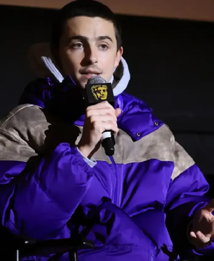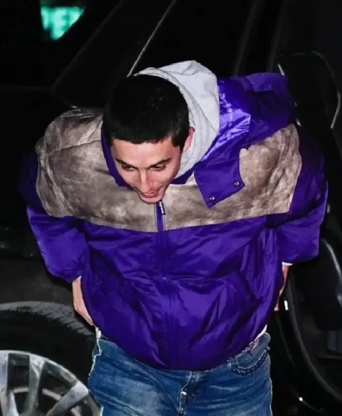 The word of mouth publicity has truly increased the hype for movie and outfits both. Coming back to Marty Supreme BAFTA Screening Timothée Chalamet Purple Satin Puffer Hooded Jacket lets understand the design. This marvelous jacket is stitched with satin fabric that allows a bold-dynamic style. Additionally, this outerwear features some aspects worth noticing. This includes a zipper closure and hooded collar that is there to elevate its style and comfort level. This is a perfect jacket that you can layer on a cool T-shirt and jeans to capture a smart- dashing look.