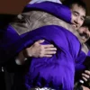 Marty Supreme BAFTA Screening Timothée Chalamet Purple Satin Puffer Hooded Jacket
