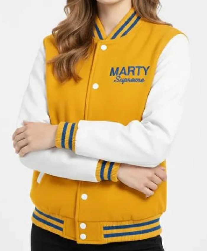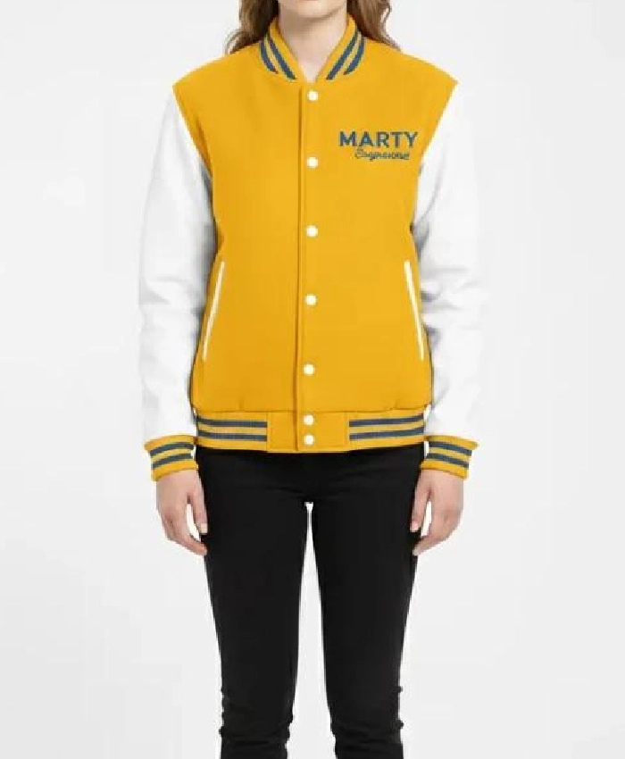 Are you heading out to the streets? Then why not showcase your cool and active style to the world while you are heading out? Moreover, in the current time, there is no better outfit to wear than a Varsity Jacket. Likewise, while you are looking for such apparel, consider trying the Marty Supreme Yellow & White Varsity Jacket. It’s new in trend, and every fashion-forward individual aims to get this apparel in their wardrobe. Furthermore, if we analyze the hype and trend, it’s because of the smart and active style that this jacket brings to the table. Additionally, its strong affiliation with Marty Supreme is also another important factor.