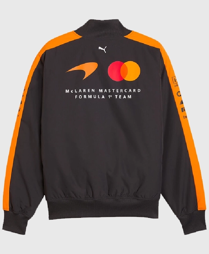 Buy McLaren F1 PUMA 2026 Team Black and Orange Bomber Jacket For Sale