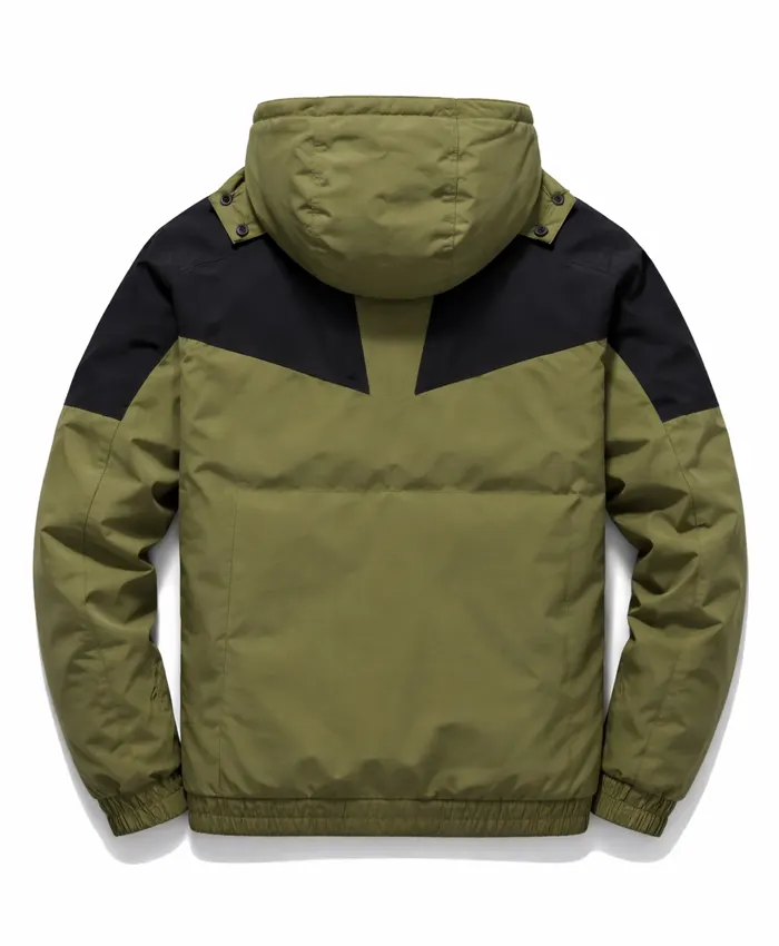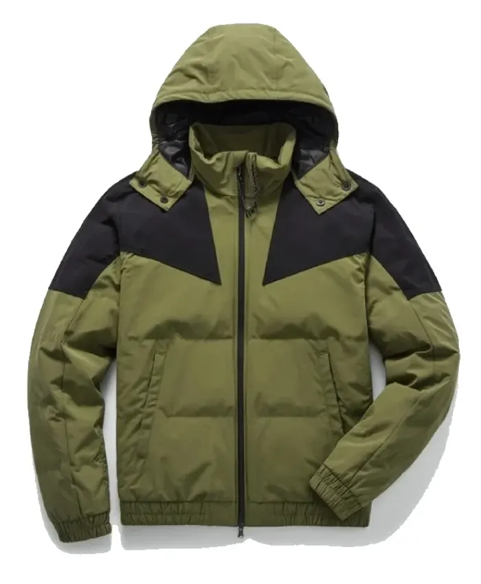 Mens Green And Black Puffer Hooded Jacket