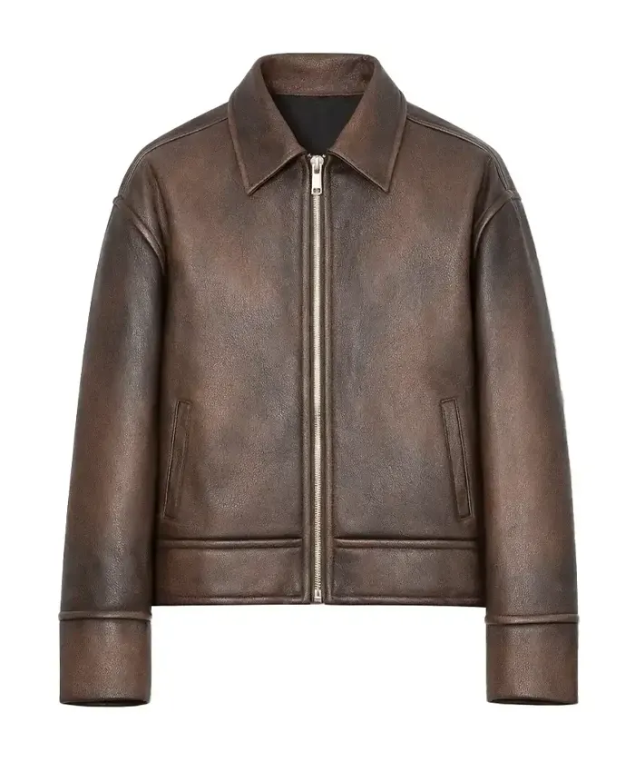 Men’s Vintage Brown Distressed Leather Bomber Jacket