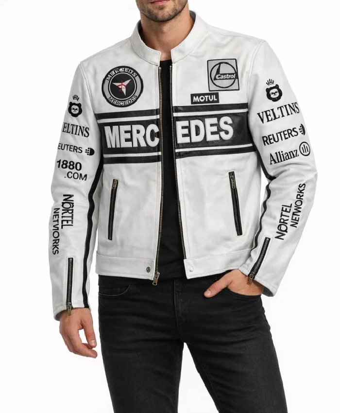 Mercedes-Benz White Genuine Cowhide Leather Jacket